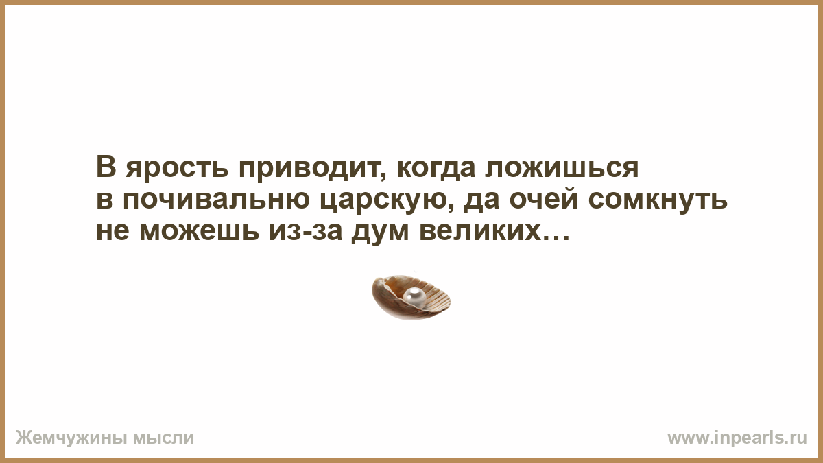 В ярость приводит, когда ложишься в почивальню царскую, да очей сомкнуть не можешь из-за дум великих…