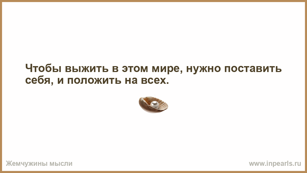 Чтобы выжить в этом мире, нужно поставить себя, и положить на всех.