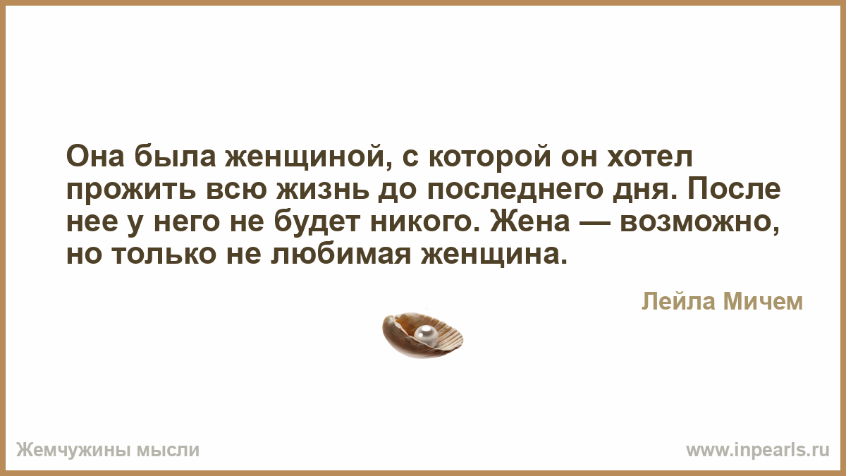 Она была женщиной, с которой он хотел прожить всю жизнь до последнего дня. После нее у него не будет никого. Жена — возможно, но только не любимая женщина.