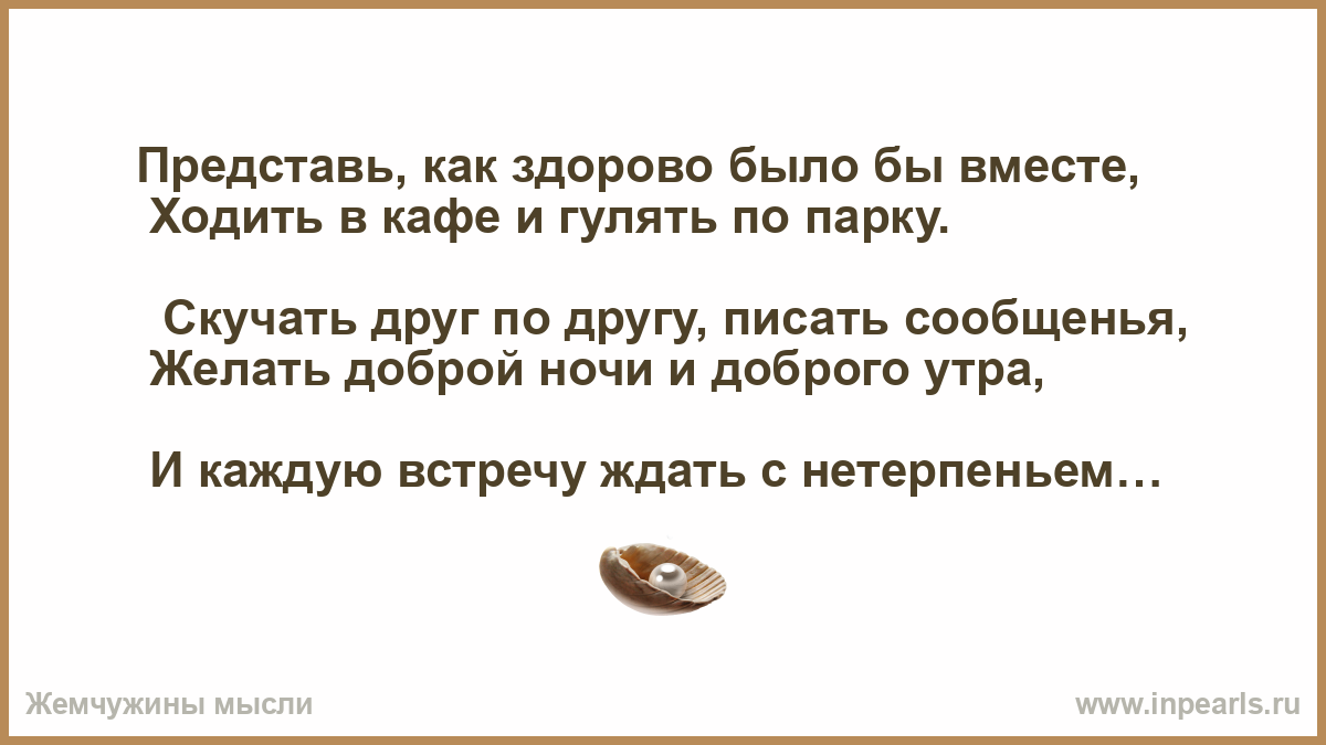 Его жена внезапно умерла… А он сидел до самого восхода, Все повторяя: «Как же ты могла?!» Перебирая вещи из комода… Глядел на тонкий шелк и кружева, Лет пять лежали вещи — не носила, «Все берегла… пока была жива… Куском обычной ткани дорожила… На всякий случай… Вот он и пришел! Загадываешь чуда, ждешь, мечтаешь… А кто-то взял… и за руку увёл! Особый случай — день, что проживаешь! Не оставлять на завтра! Жить сейчас! И не беречь посуду и одежду! Не доедать, не прятать про запас! И быть все время вместе, а не между… Беречь живой огонь любимых глаз, И каждый жест, и каждую улыбку, Все узелки, что связывают вас… Чтоб не жалеть, что совершил ошибку…»