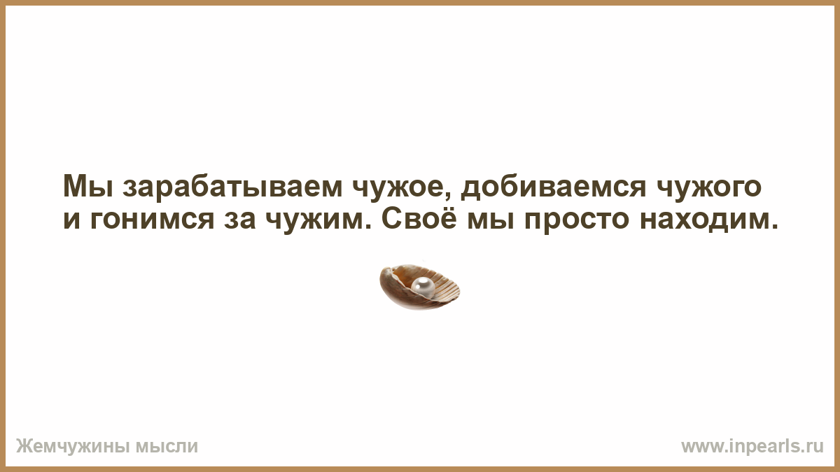 Мы зарабатываем чужое, добиваемся чужого и гонимся за чужим. Своё мы просто находим.