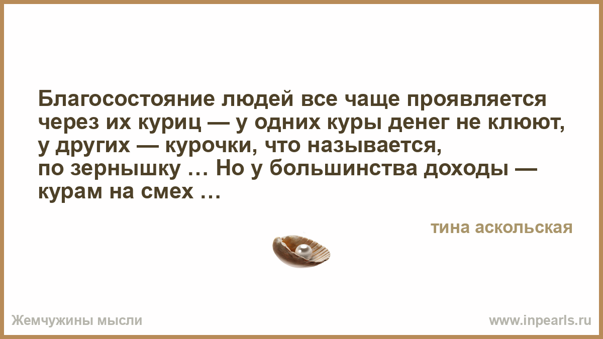 Благосостояние людей все чаще проявляется через их куриц — у одних куры денег не клюют, у других — курочки, что называется, по зернышку … Но у большинства доходы — курам на смех …
