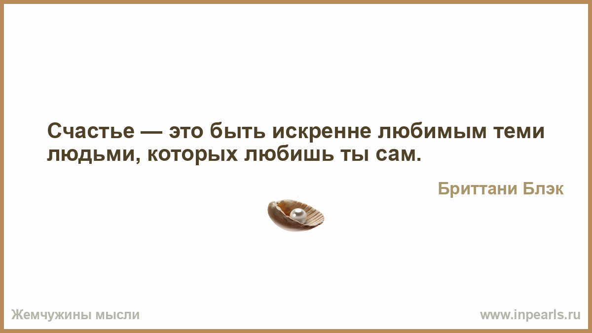 Счастье — это быть искренне любимым теми людьми, которых любишь ты сам.