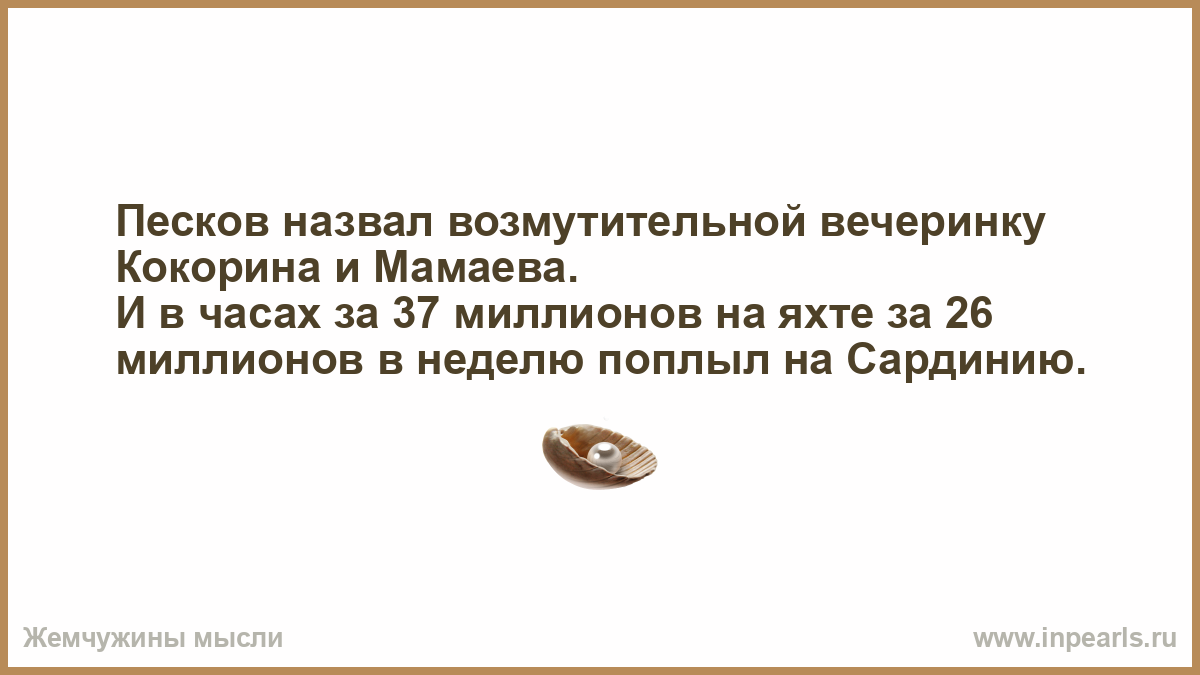 И в часах за 37 миллионов на яхте за 26 миллионов в неделю поплыл на Сардинию.