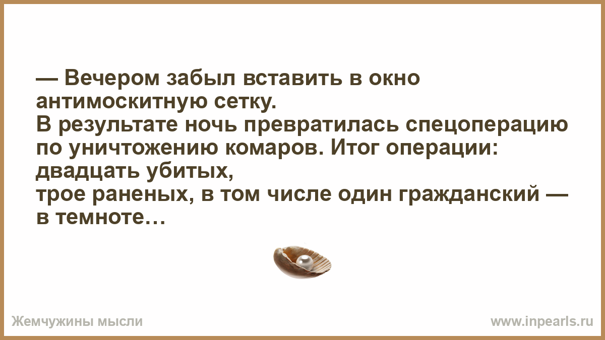 — Вечером забыл вставить в окно антимоскитную сетку.