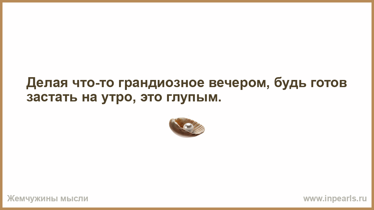 Делая что-то грандиозное вечером, будь готов застать на утро, это глупым.