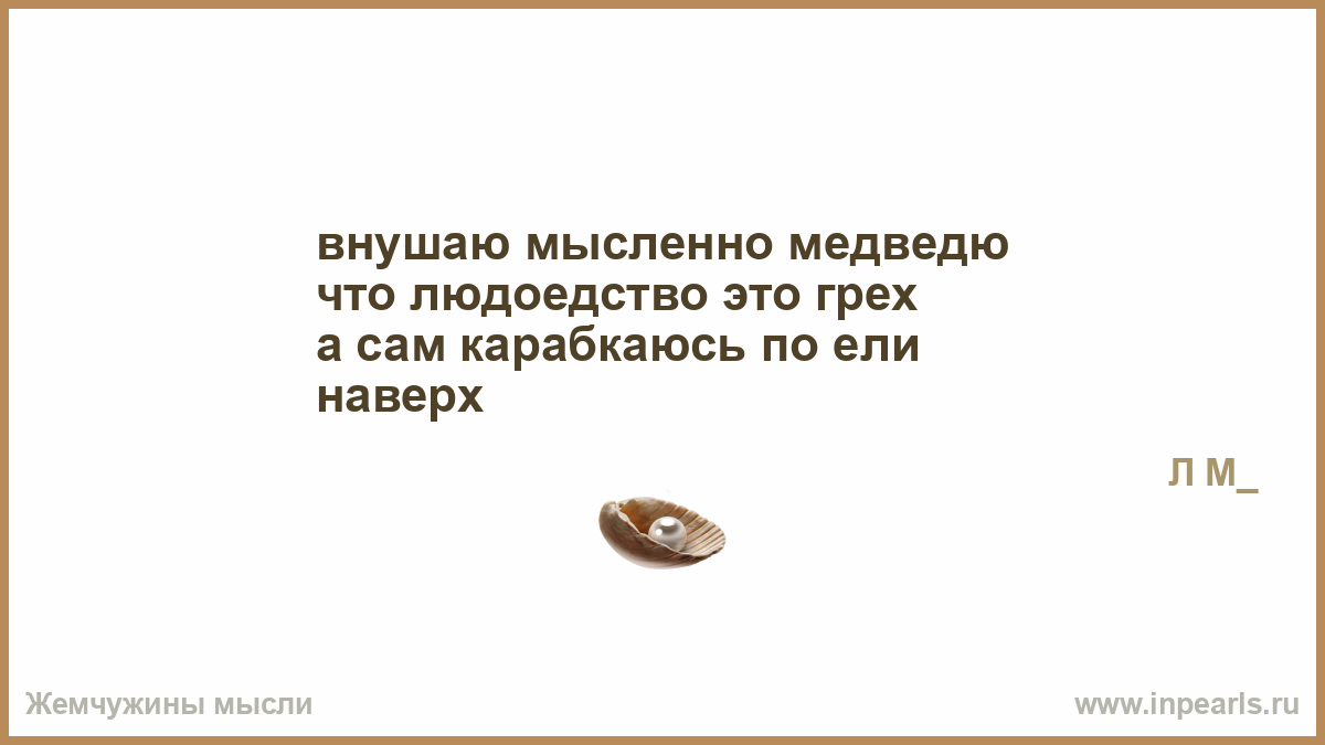 внушаю мысленно медведю что людоедство это грех а сам карабкаюсь по ели наверх