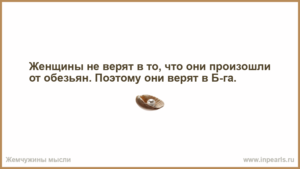 Женщины не верят в то, что они произошли от обезьян. Поэтому они верят в Б-га.