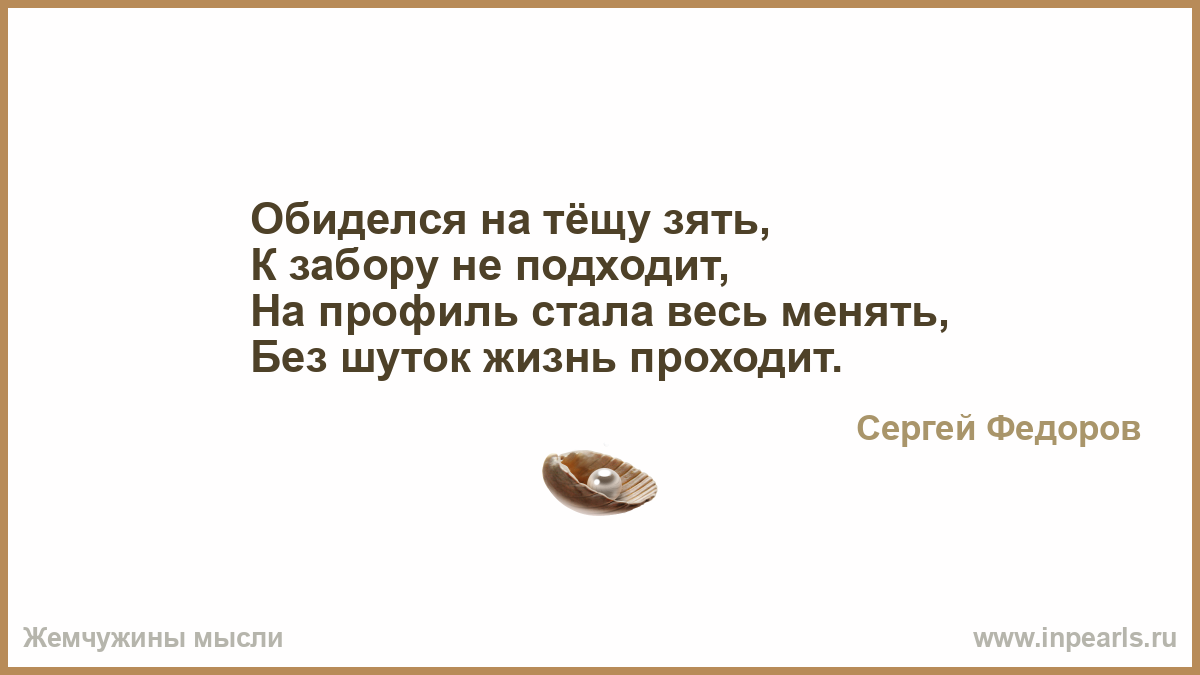 Обиделся на тёщу зять, К забору не подходит, На профиль стала весь менять, Без шуток жизнь проходит.