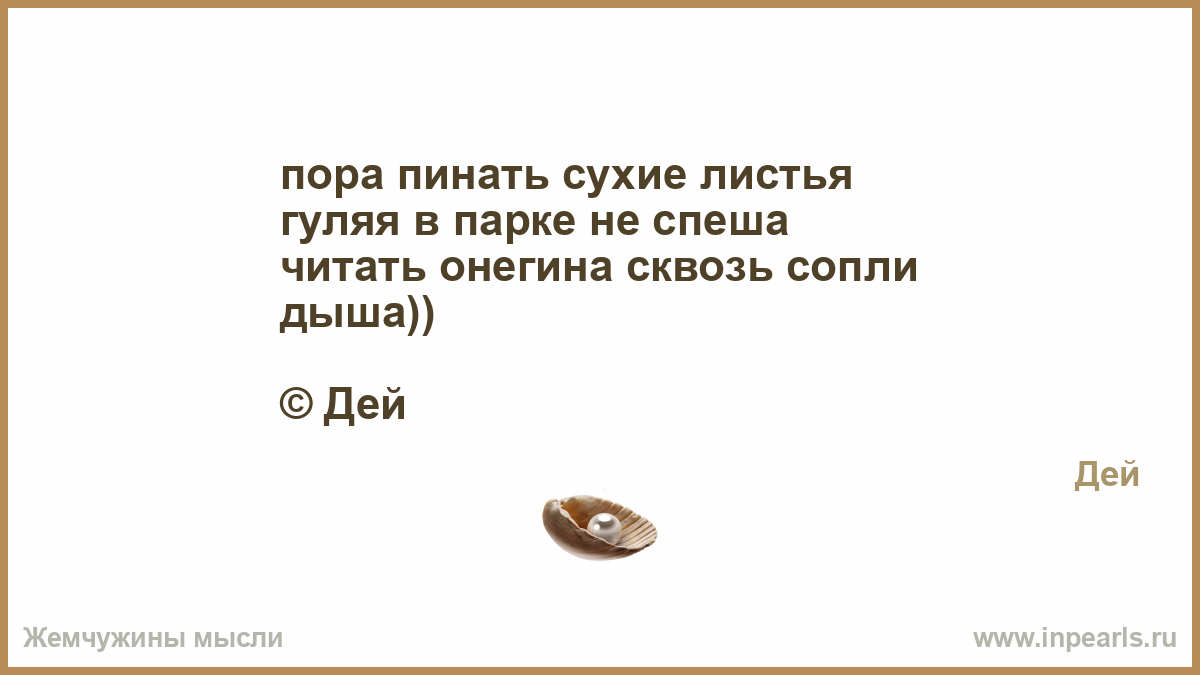 пора пинать сухие листья гуляя в парке не спеша читать онегина сквозь сопли дыша))