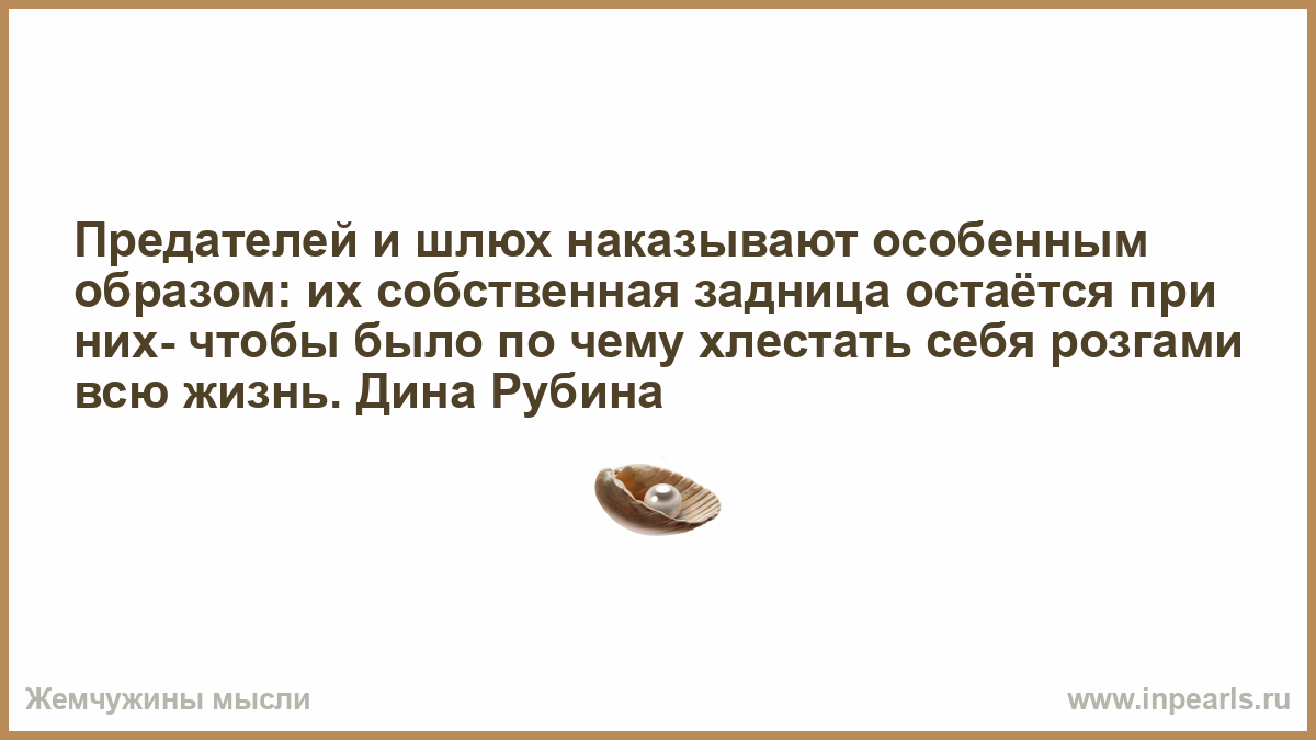 Предателей и шлюх наказывают особенным образом: их собственная задница остаётся при них- чтобы было по чему хлестать себя розгами всю жизнь. Дина Рубина