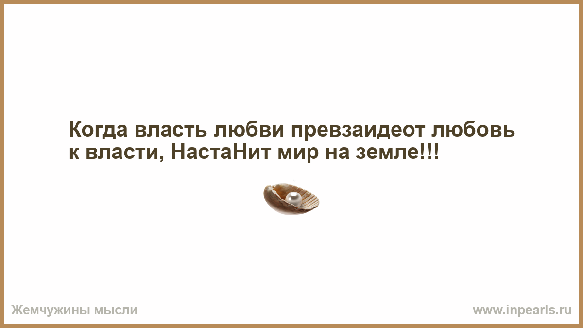 Когда власть любви превзаидeот любовь к власти, НастаНит мир на земле!!!