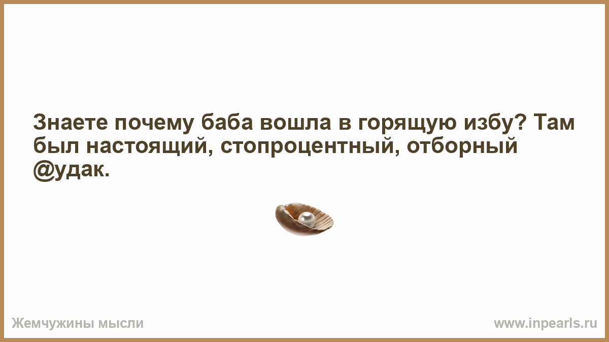 Знаете почему баба вошла в горящую избу? Там был настоящий, стопроцентный, отборный @удак.