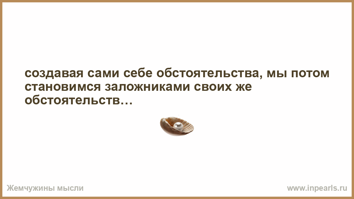 создавая сами себе обстоятельства, мы потом становимся заложниками своих же обстоятельств…