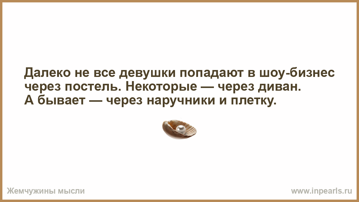 Далеко не все девушки попадают в шоу-бизнес через постель. Некоторые — через диван. А бывает — через наручники и плетку.