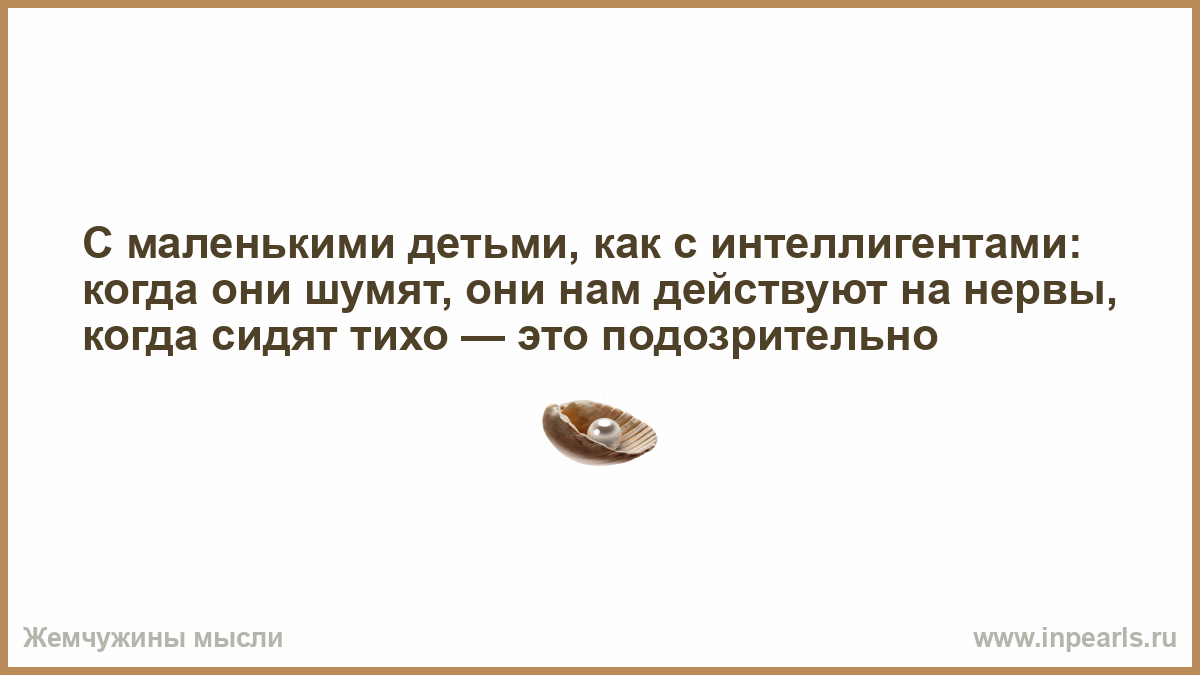 С маленькими детьми, как с интеллигентами: когда они шумят, они нам действуют на нервы, когда сидят тихо — это подозрительно