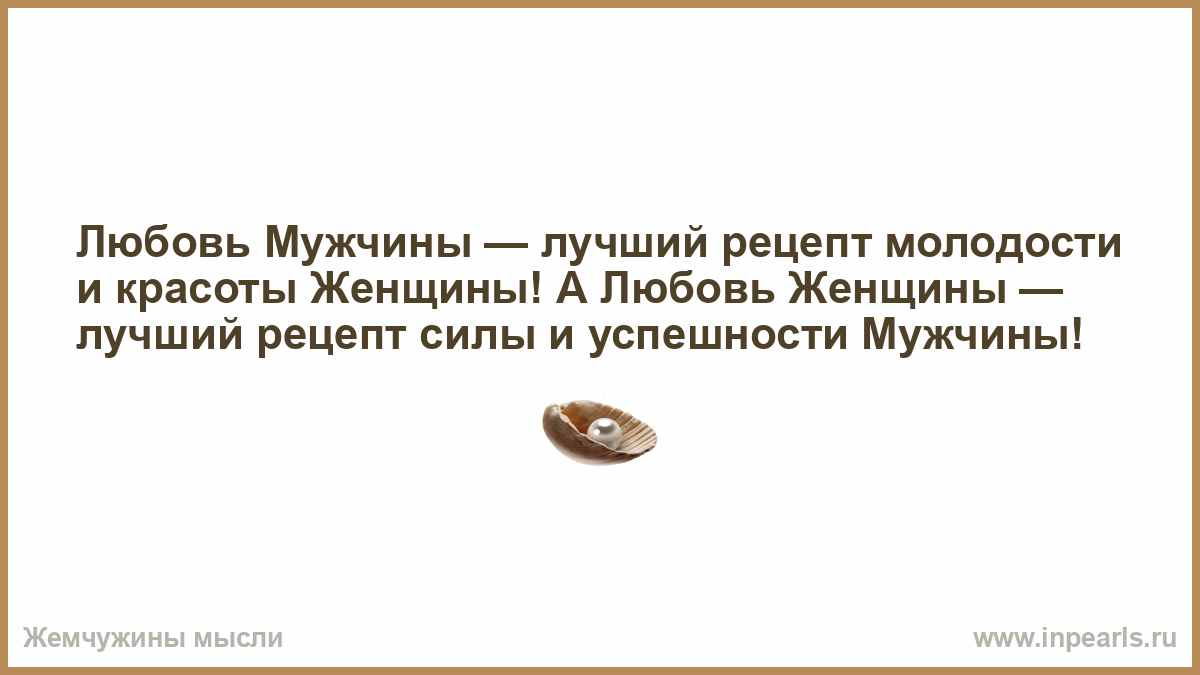 Любовь Мужчины — лучший рецепт молодости и красоты Женщины! А Любовь Женщины — лучший рецепт силы и успешности Мужчины!