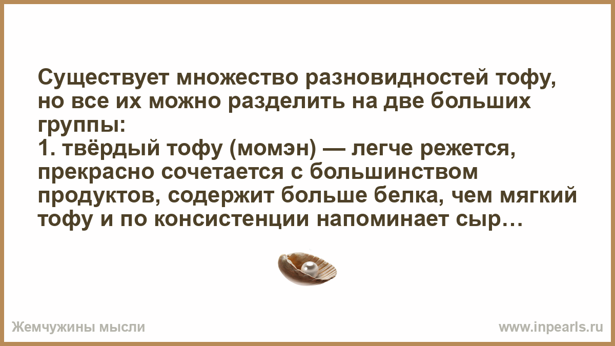 Существует множество разновидностей тофу, но все их можно разделить на две больших группы: