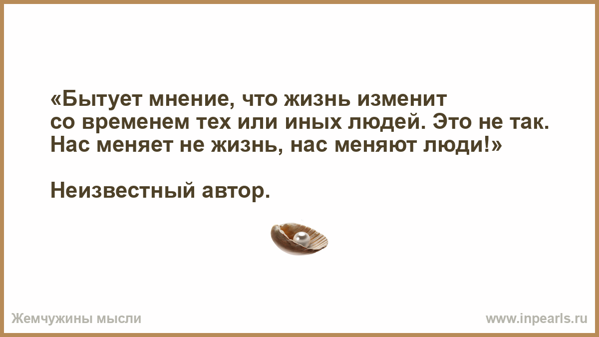 «Бытует мнение, что жизнь изменит со временем тех или иных людей. Это не так. Нас меняет не жизнь, нас меняют люди!»