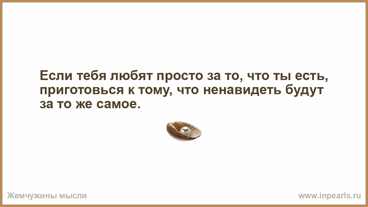 Если тебя любят просто за то, что ты есть, приготовься к тому, что ненавидеть будут за то же самое.