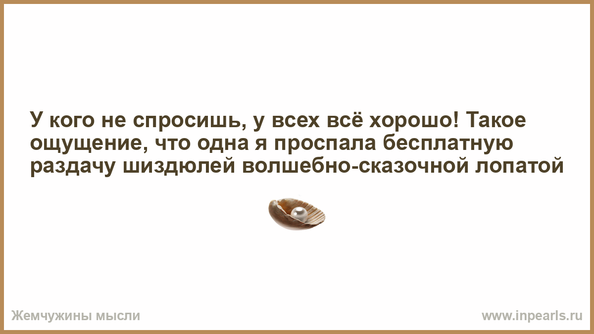 У кого не спросишь, у всех всё хорошо! Такое ощущение, что одна я проспала бесплатную раздачу шиздюлей волшебно-сказочной лопатой