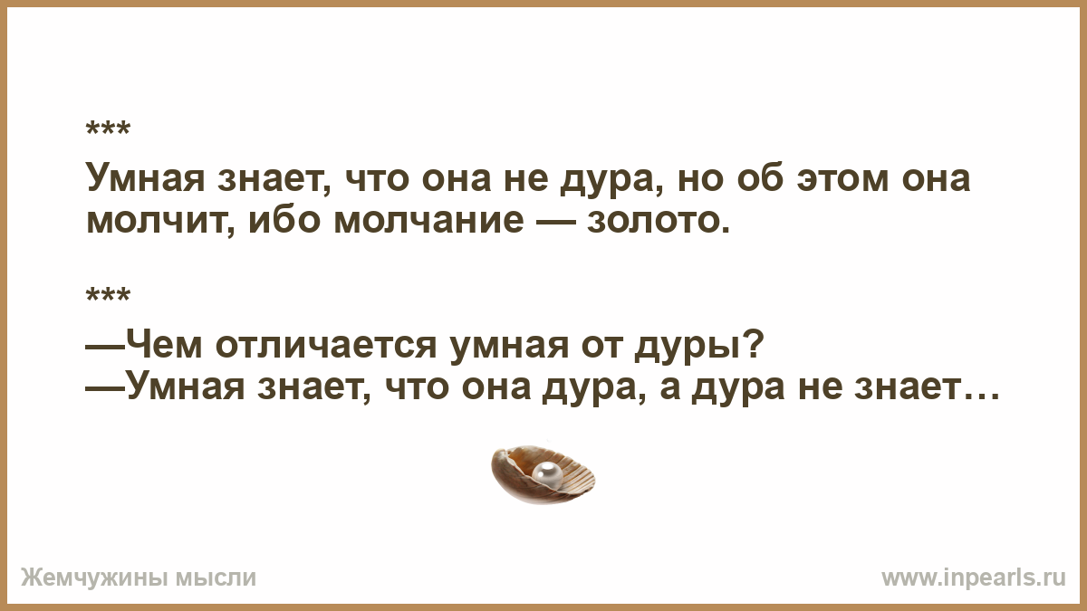 Умная знает, что она не дура, но об этом она молчит, ибо молчание — золото.