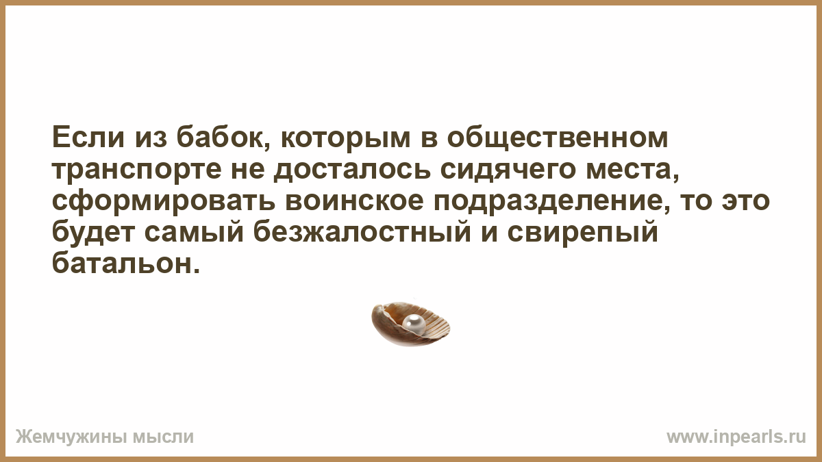 Если из бабок, которым в общественном транспорте не досталось сидячего места, сформировать воинское подразделение, то это будет самый безжалостный и свирепый батальон.