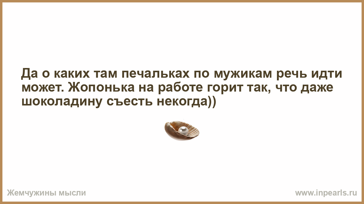 Да о каких там печальках по мужикам речь идти может. Жопонька на работе горит так, что даже шоколадину съесть некогда))