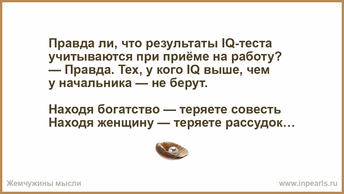 — Правда. Тех, у кого IQ выше, чем у начальника — не берут.
