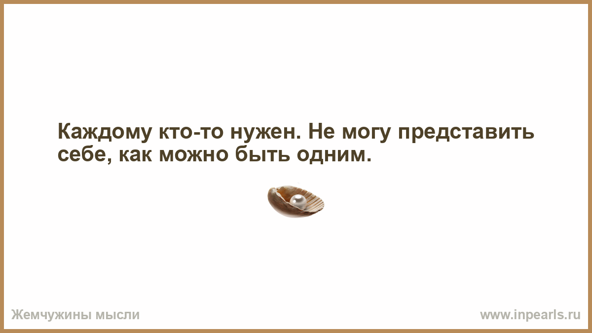 Каждому кто-то нужен. Не могу представить себе, как можно быть одним.