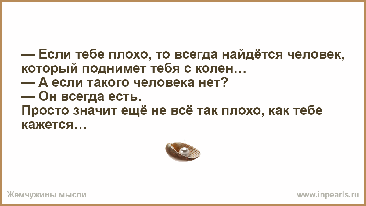 — Если тебе плохо, то всегда найдётся человек, который поднимет тебя с колен…