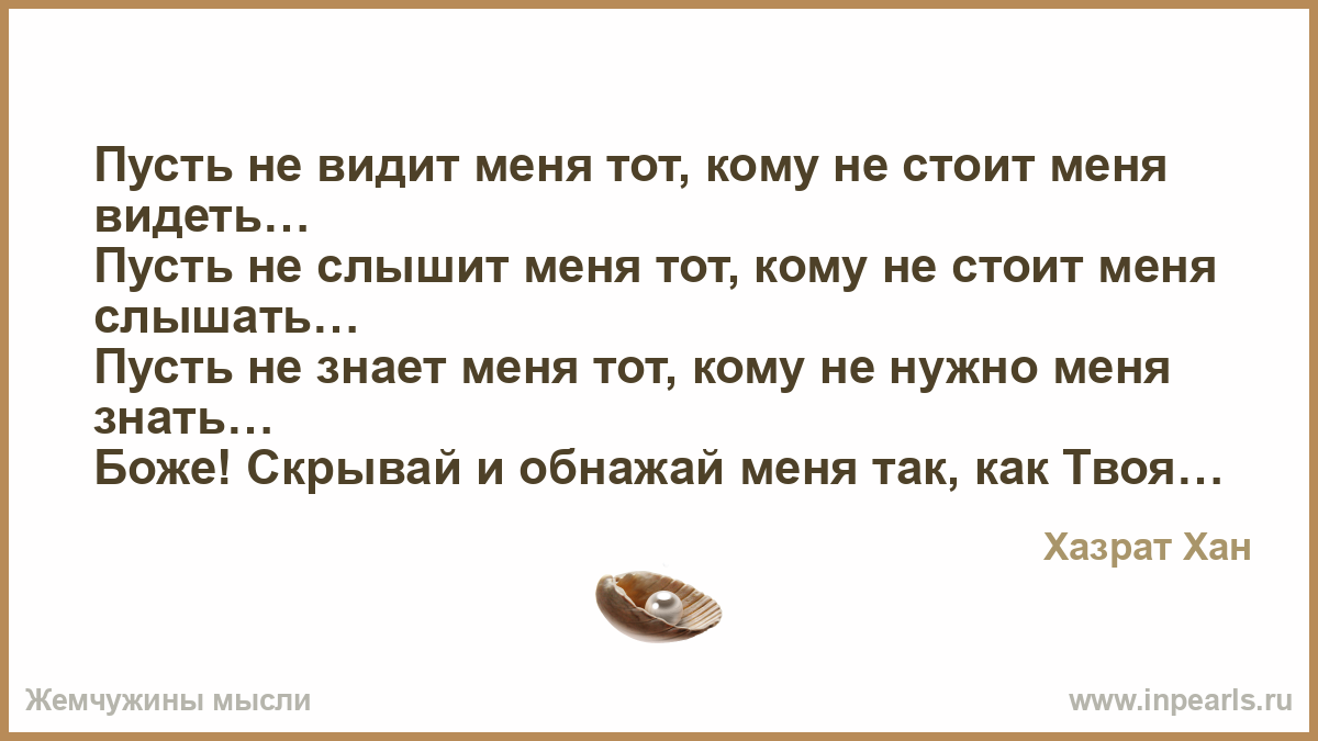 Пусть не видит меня тот, кому не стоит меня видеть…