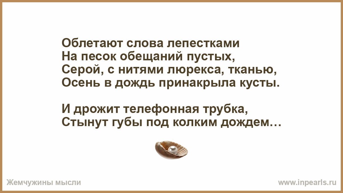 Бережнее будьте, пожалуйста бережнее… Ведь сердца не железные наши совсем и душа не гранит… То, что словом разбито обратно не склеишь уже… Есть слова, словно пули, выстрелишь и человек убит… Осторожнее будьте, пожалуйста, осторожнее… Заживает на свете, увы, не всегда любовь… Есть такие слова, после них и дышать невозможно… Фразы злые такие, что стынет горячая кровь… Вы нежнее будьте, пожалуйста, будьте нежнее… Тот, кто любит, всегда без кожи пред вами стоит… Нет на свете того, что нашей любви важнее… Но ничто так не ранит нас, ничто так отчаянно не болит… Аккуратнее будьте, пожалуйста, аккуратнее… Если злитесь вы очень, попробуйте промолчать… Не старайтесь ударить словом обиднее и неприятнее… Есть такие слова, что не может душа их прощать…