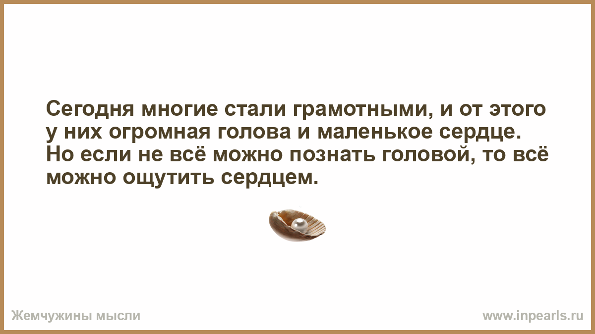 Сегодня многие стали грамотными, и от этого у них огромная голова и маленькое сердце. Но если не всё можно познать головой, то всё можно ощутить сердцем.