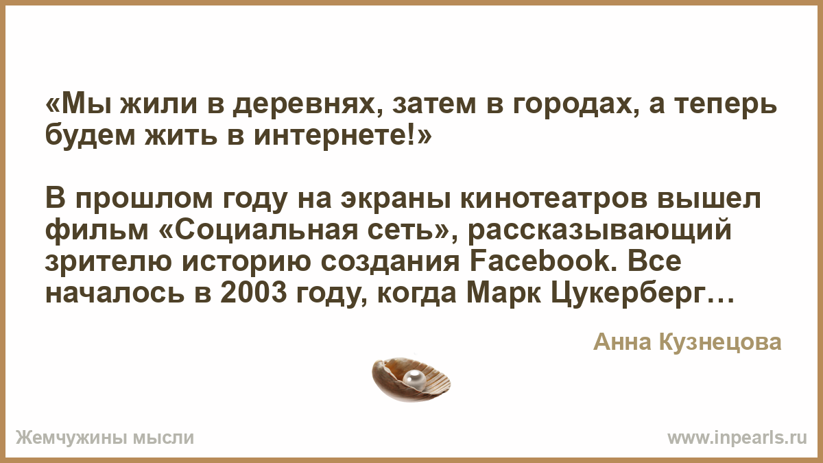 «Мы жили в деревнях, затем в городах, а теперь будем жить в интернете!»