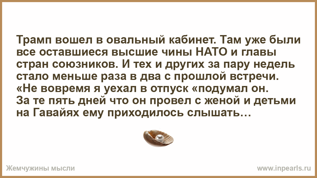 — Короче послал куда подальше? Поняв что перечисление причин может занять много времени, прервал его Трамп.