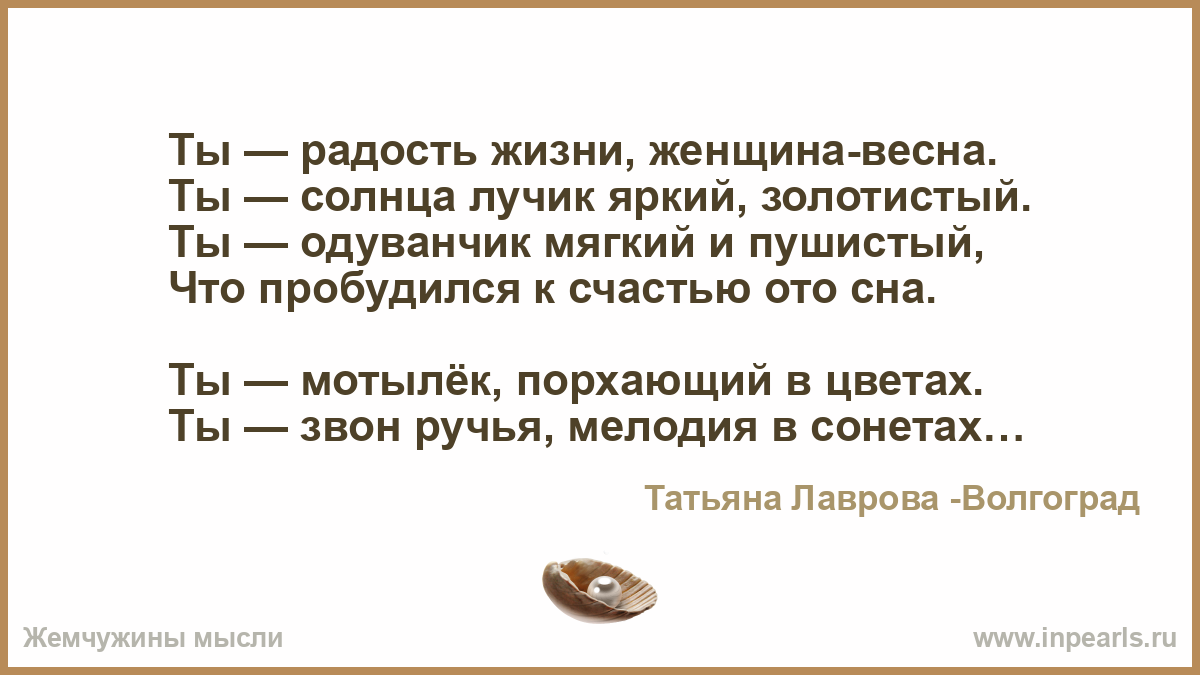 Ты — радость жизни, женщина-весна.