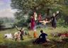 Светлые, пастельные, будто сладкие и припудренные сахаром домики, небо и земля, люди и животные, — все на картине является олицетворением некой сладостной детской мечты.