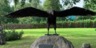Листва, уже облетевшая с деревьев, устилает землю мягким ковром, крыша покрыта ржавым узором мха и опавших листьев.