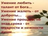 • Любовь возможна, только если два человека связаны друг с другом центрами существования, а значит каждый из них воспринимает себя из глубины своего существования.